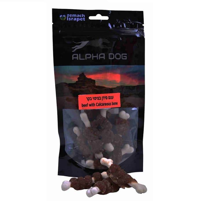 חטיף אלפא דוג בקר עצם סידן 80 גרם.