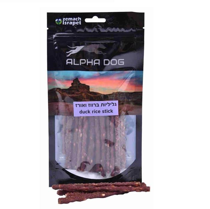 חטיף אלפא דוג גליליות ברווז 80 גרם.